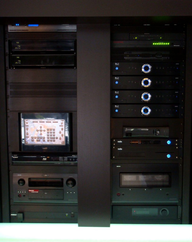 Equipment cabinets are essential to larger installations and allow for a clean, modern and minimalist living space. Quality equipment, solid power conditioning and good thermal management make little work for our service department, but we’re always there when you need us.